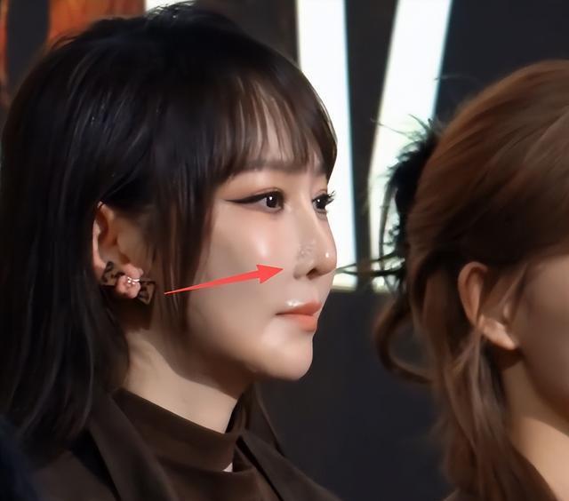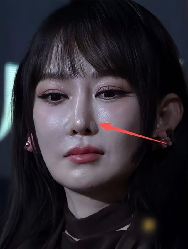 她鼻子小到快看不见,下巴和苹果肌肿胀的好明显,而且满面油光简直就是现实中的的女版“猪刚鬣”,看着都有些“晃眼”。