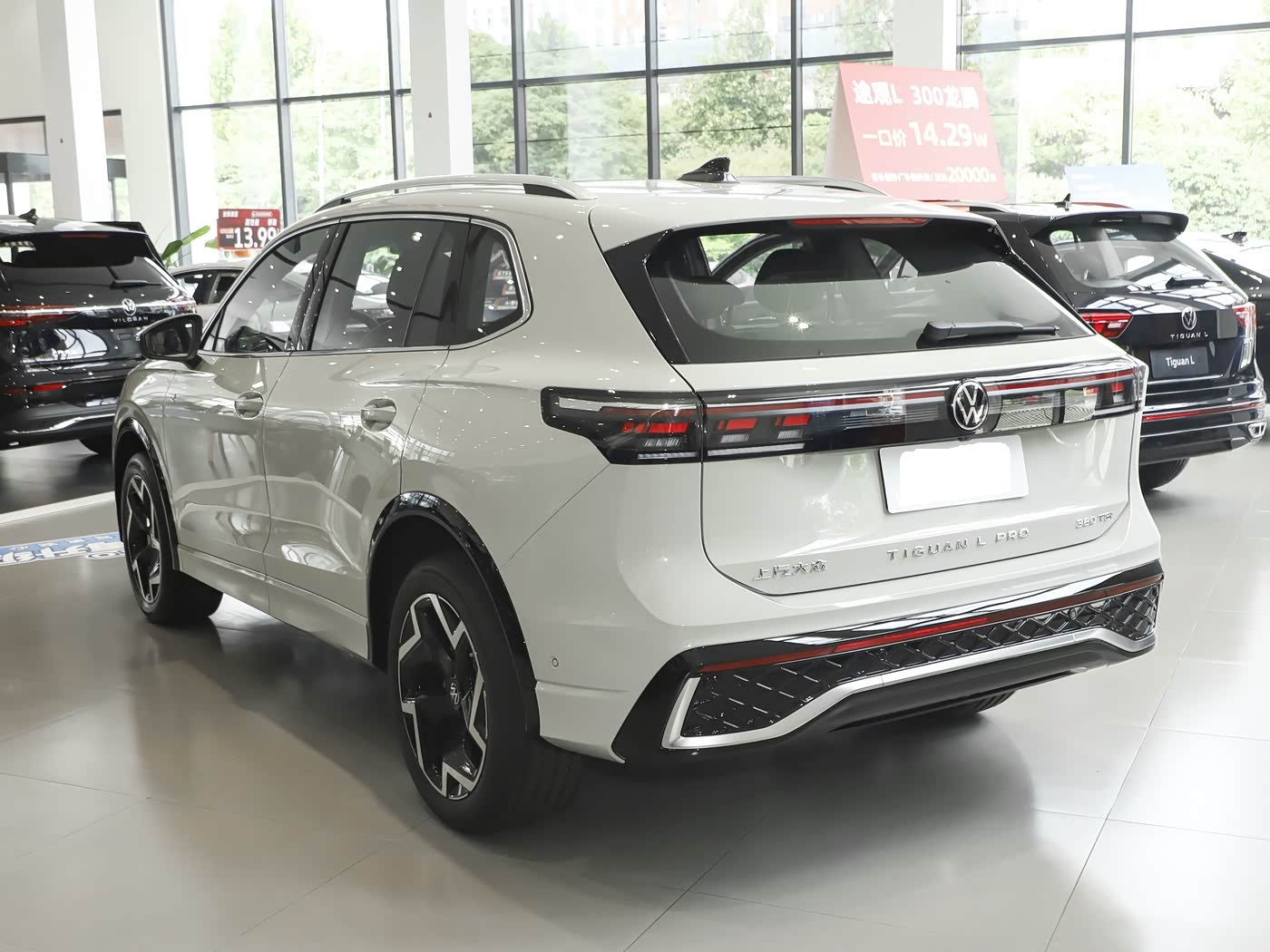 再来看车尾部分,车尾采用贯穿式LED灯带与发光Logo的组合,与前脸形成呼应。R-Line运动版的黑色扩散器与双边四出排气装饰(实际为隐藏式排气)进一步强化运动基因。尾灯组内部采用3D立体结构,点亮后呈现"流水转向"效果,夜间可视性提升明显。后保险杠的银色护板设计既保护车身,又通过几何切割线条增强层次感。这种设计在保持途观系列标志性轮廓的同时,通过细节创新实现视觉年轻化。