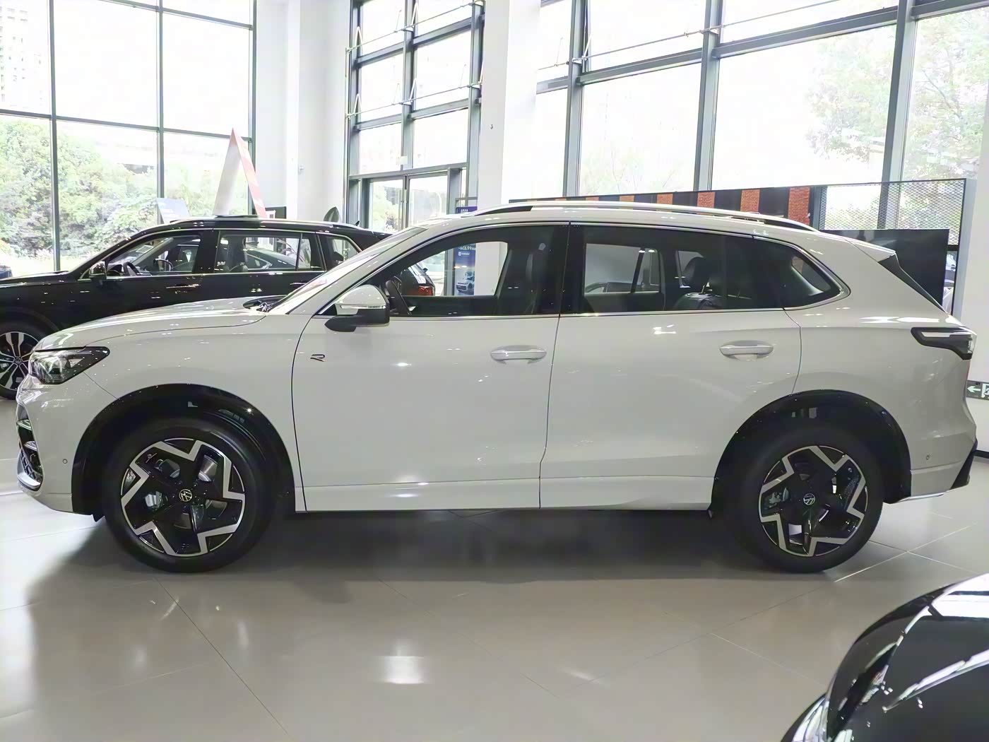 再来看车身侧面部分,车身侧面延续了途观系列的经典比例,车长4735mm、轴距2791mm,配合20英寸五辐式轮毂,展现出蓄势待发的姿态。隐藏式门把手与悬浮式车顶设计降低风阻系数,而R-Line版本独有的侧裙黑化处理则强化运动属性。车窗镀铬饰条与车身同色设计,既提升豪华感,又避免传统镀铬件的突兀感。这种设计哲学在细节处体现:例如后视镜集成转向灯与摄像头,兼顾功能性与美观性。