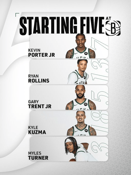 雄鹿首发:特伦特、特纳、罗林斯、库兹马、小波特。
