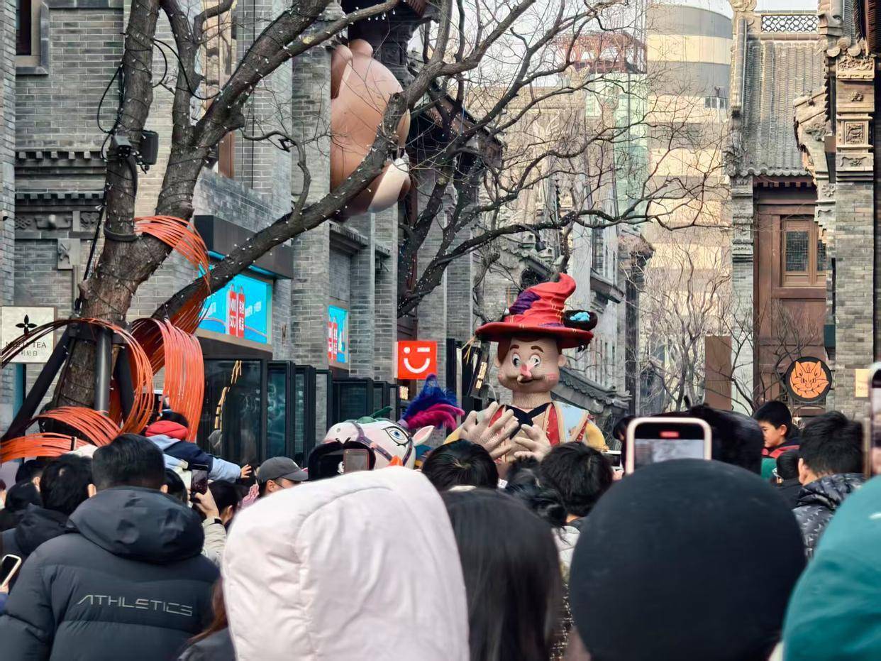 1月1日下午,在郑州亳都·新象街区,随着一位小朋友欢快的声音,巨型木偶匹诺曹在人群的簇拥下缓缓走来。