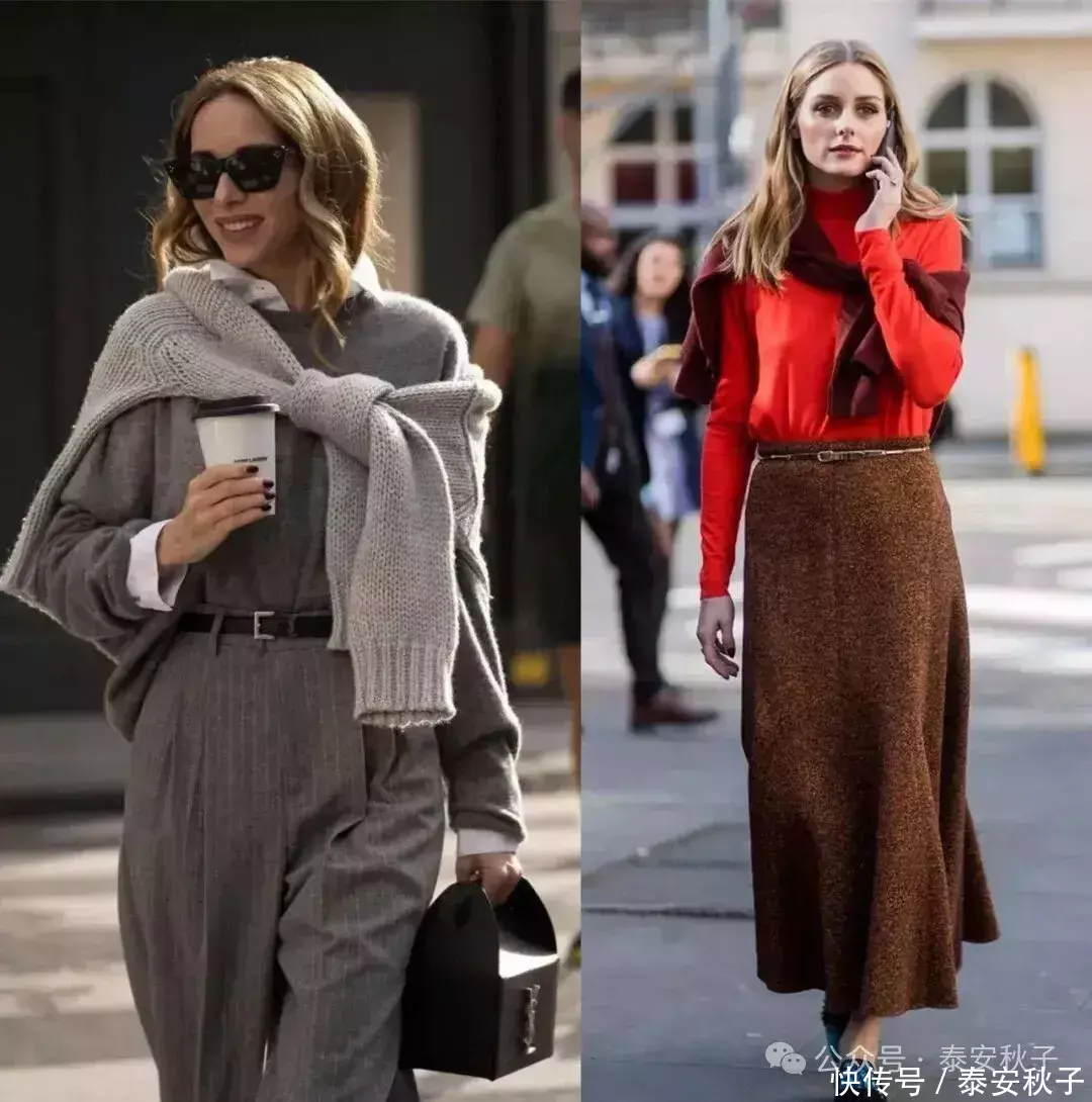 比如初冬正午阳光强烈的时候,就把外面的毛衣开衫当成披肩披在肩头,这样的穿既不会让你感觉到闷热,又能给整体造型增添些随性洒脱的味道。