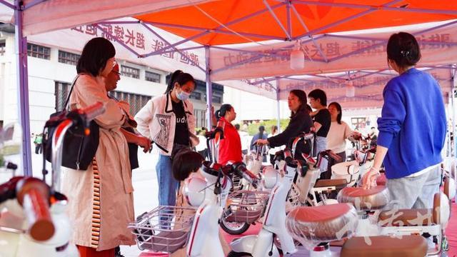 ↑国庆中秋“双节”期间,市民在市第12届惠民电动车团购会上选购电动车。韩文洲摄