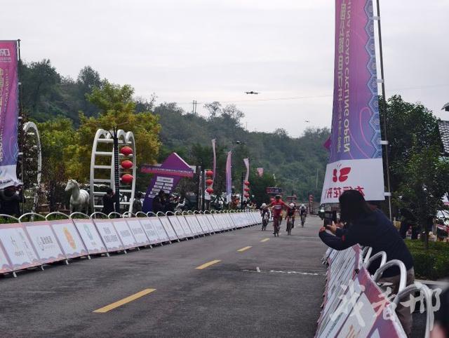 ↑2025中国公路自行车公开赛(邢台站)上,首名选手冲过终点线,享受夺冠的喜悦。郭雨晗摄