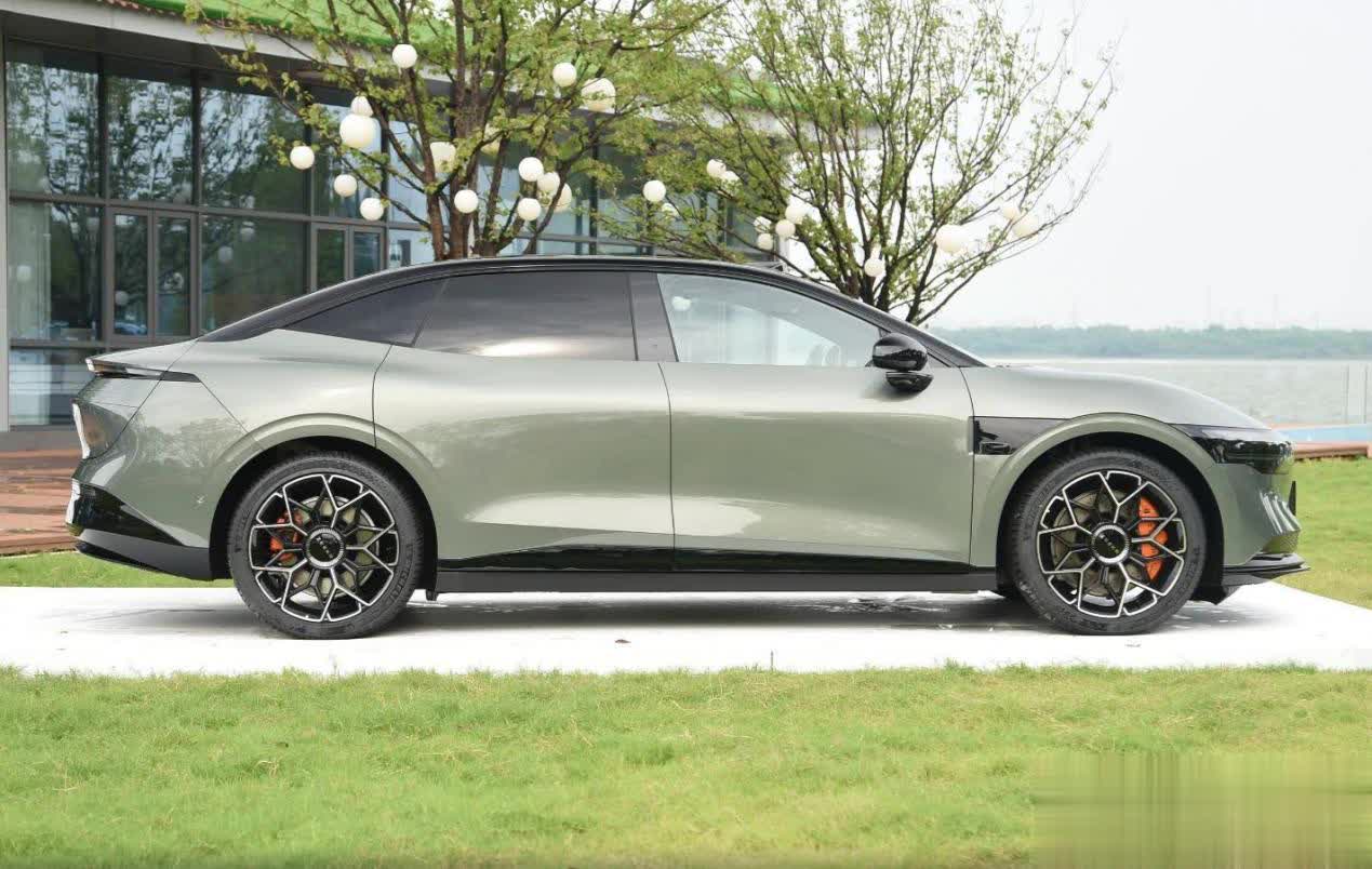 从车身侧面看,整车采用了接近轿跑车风格的流线型设计,窗线与车顶线条在尾箱盖前端产生交汇,营造出悬浮式的效果。同时细心观察会发现,该车使用的全景天幕玻璃和后风挡玻璃贴合度非常高,再加上车辆采用了隐藏式门把手和贯穿式LED尾灯等强调线条完整的设计,所以从后方斜45度角看过去,整体设计的流畅度和一体性很好。尺寸部分,新车的长宽高依旧为4865x1900x1450mm,轴距为2928mm,作为一款中型轿车,这个尺寸在同级中属于主流水准。
