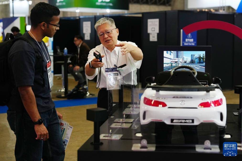 10月14日,在日本千叶县,工作人员在2025年日本高新技术博览会上向参会者介绍智能驾驶技术。