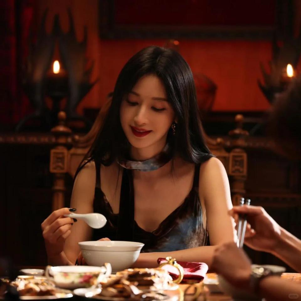 一场切割生肉配红酒的戏,她以仪式感动作隐喻嗜血本性。红唇暗黑造型成为强烈视觉符号,观众赋予“蛇塑”标签,弹幕高频刷屏“阴湿感溢出屏幕”。