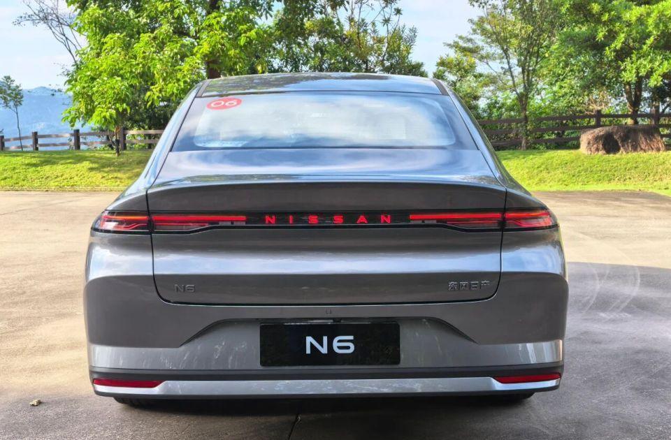 车身尾部,顶部搭配微微上翘的小鸭尾设计,贯穿式尾灯,尾灯组中央为NISSAN字母标识,支持点亮,隐藏式排气管,符合年轻家庭的设计需求。