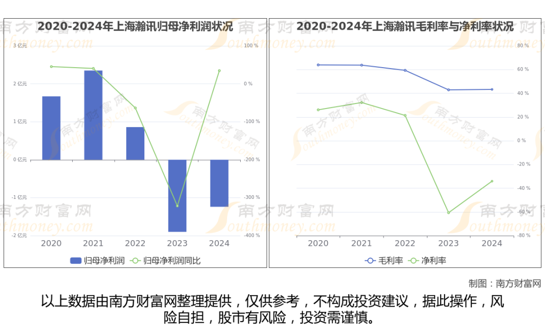 上海瀚讯年报数据显示(如上图),2024年实现营业总收入3.53亿,同比增长12.97%,近5年复合年增长率-13.83%。